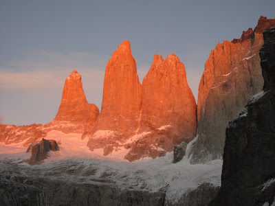 This would be entirely possible however it didn't pan out that way. We set out from Puerto Natales on a minibus early in the morning of April 14th. Our bus driver was super nice and let us hop out to take photos along the way. Our first glimpse of the towers was jaw-dropping.